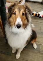 Wally is a big sable boy weighing 36 pounds. He is a love bug! He's shy at first but quickly warms up to anyone who will give him attention. He is loving and very sweet. He is very much still a puppy at 15 months old; he is active and playful and loves to play with other dogs. We are looking for a home for Wally with a securely fenced yard, another dog to play with and chase, and someone who will not leave him for long hours every day. Wally has gone to his forever home witha wonderful family in NJ.